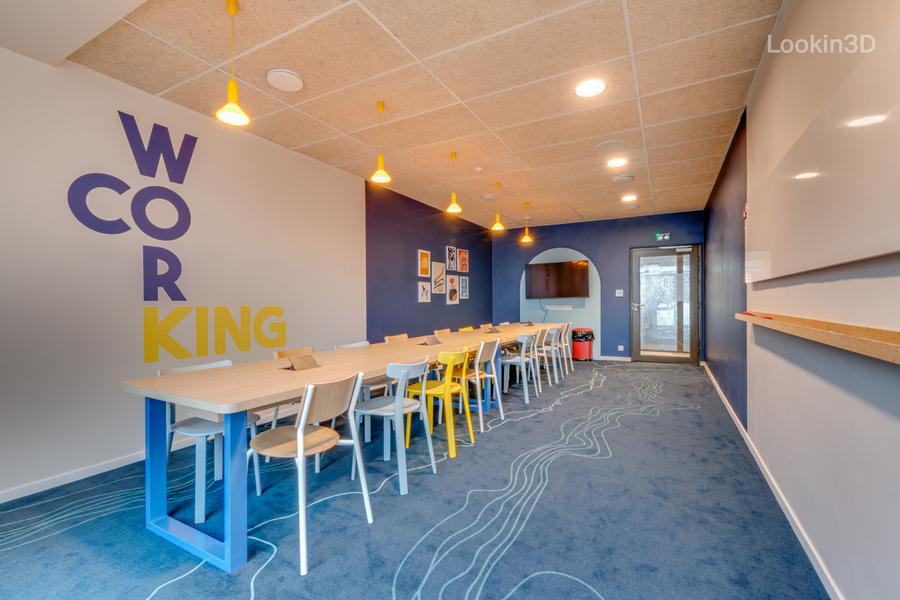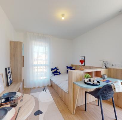 À l’intérieur, la résidence se pare d’une décoration conviviale et chaleureuse avec des espaces partagés comme une salle de détente, un espace cafétéria avec une Epicoop, des salles de coworking, une salle fitness et une laverie connectée.