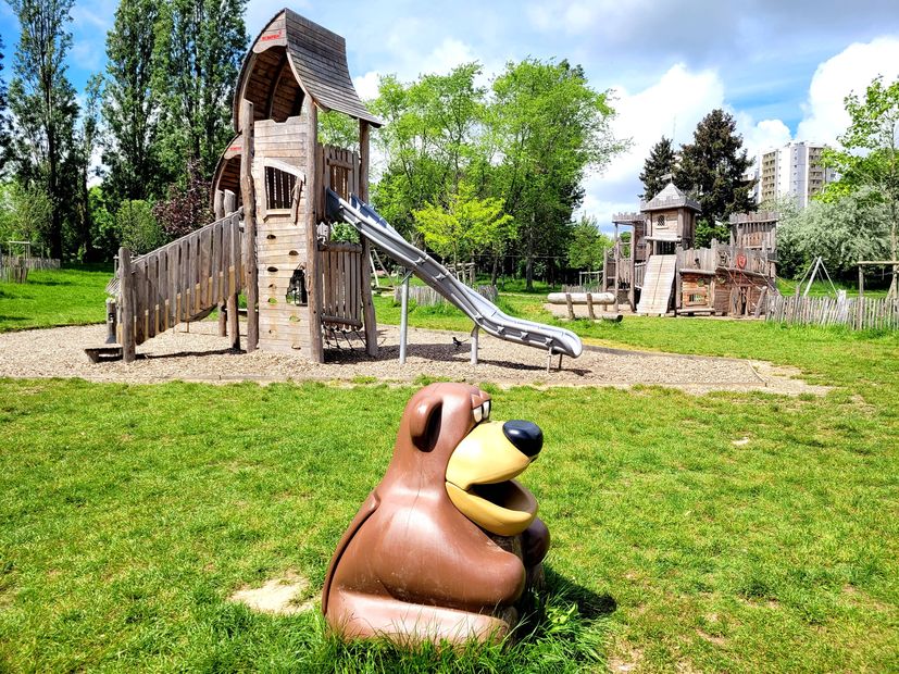 Nichée dans le joli parc Flaubert, cette aire de jeux est l'endroit parfait pour une pause jeux en plein air !